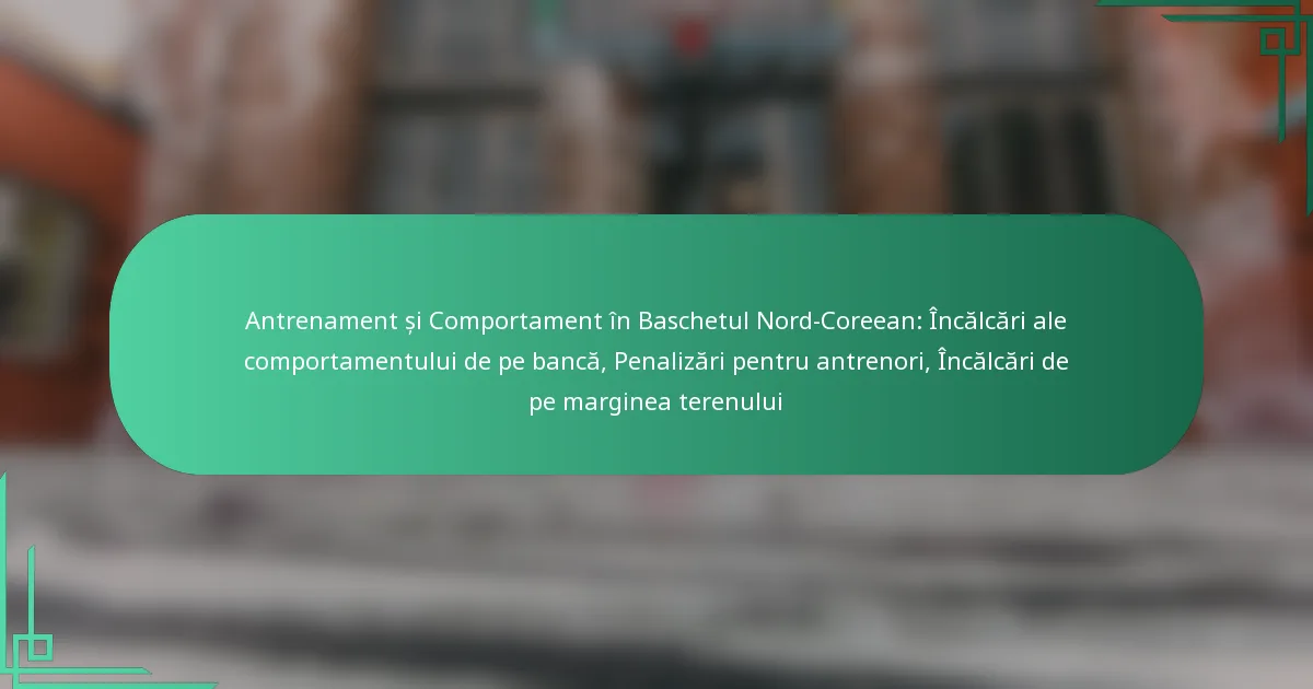 În baschetul nord-coreean, încălcările comportamentului de pe bancă cuprind o gamă de infracțiuni comise de antrenori, jucători sau personalul echipei care au loc pe marginea terenului în timpul jocurilor. Astfel de încălcări pot perturba desfășurarea jocului și pot duce la penalizări care nu doar că afectează performanța echipei, ci și moralul acesteia. Penalizările stricte aplicate antrenorilor abordează diferite aspecte ale comportamentului de pe bancă și al comportamentului de pe margine, subliniind importanța menținerii standardelor etice în sport.