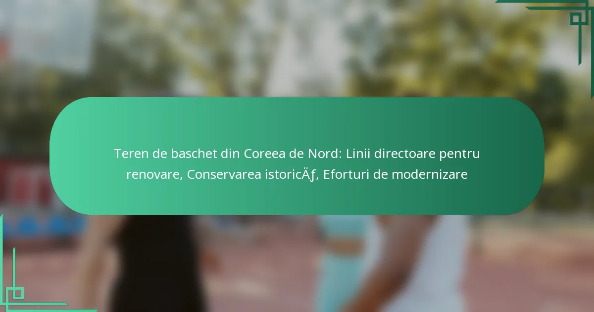 Orientările pentru renovarea terenurilor de baschet din Coreea de Nord se concentrează pe menținerea integrității istorice în timp ce se integrează caracteristici moderne. Aceste orientări asigură că renovările respectă patrimoniul arhitectural și se conformează standardelor de siguranță și mediu.
