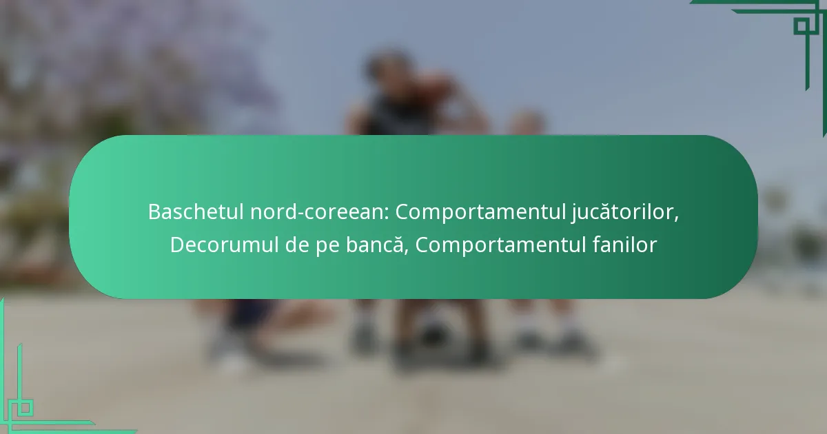 Antrenorii și jucătorii din baschetul nord-coreean manifestă comportamente distincte pe bancă care reflectă valorile culturale și dinamica echipei. Comportamentul pe bancă este caracterizat prin etichetă strictă, roluri clare și ritualuri unice care diferă de normele internaționale.