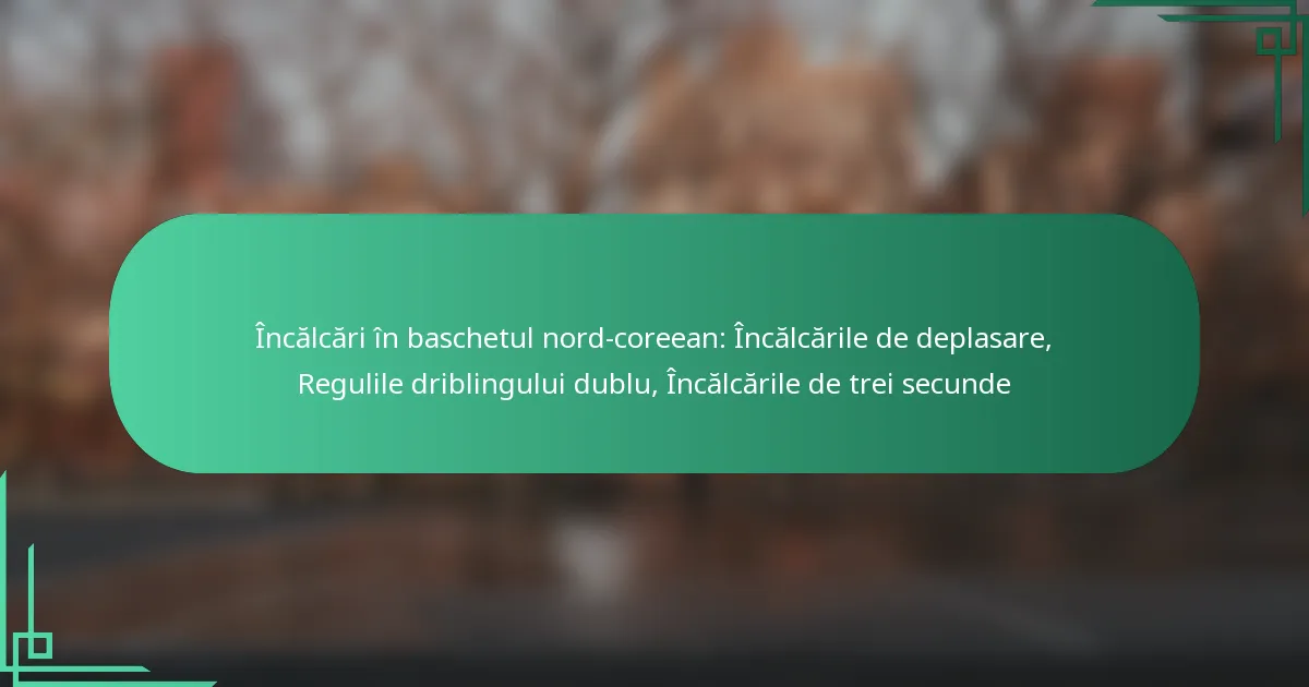 În baschetul nord-coreean, respectarea strictă a regulilor referitoare la încălcările de deplasare, driblingul dublu și încălcările de trei secunde este esențială pentru menținerea integrității jocului. Încălcările de deplasare apar atunci când jucătorii se mișcă fără a dribla, în timp ce regulile privind driblingul dublu împiedică jucătorii să-și reia driblingul după ce s-au oprit. În plus, încălcările de trei secunde asigură că jucătorii ofensive rămân activi și implicați, promovând un joc mai dinamic și mai rapid.