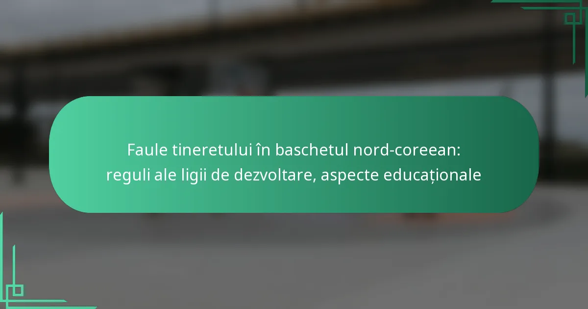 Regulile de faulturi juvenile în baschetul nord-coreean influențează semnificativ dezvoltarea jucătorilor prin formarea abilităților, comportamentului și înțelegerii jocului. Aceste reglementări promovează disciplina și sportivitatea, îmbunătățind în același timp conștientizarea tactică și abilitățile tehnice ale jucătorilor.